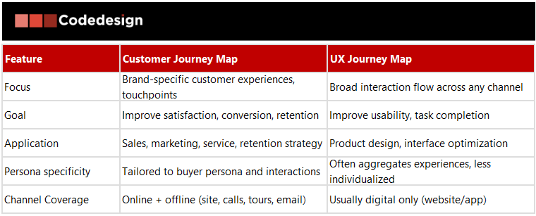 - Unlike a UX map, which optimizes interfaces, a customer journey map aligns digital marketing and service delivery for truly differentiated branded experiences.