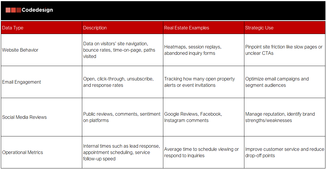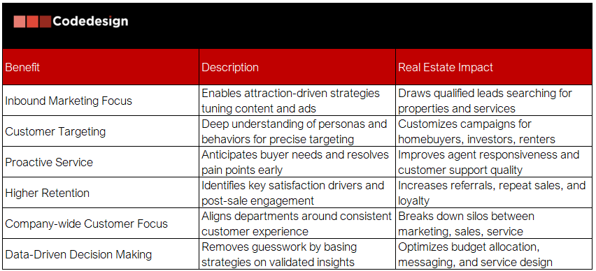 This multifaceted data approach equips real estate marketers to design holistic, data-driven customer journeys that increase conversion, foster client satisfaction, and build lasting brand loyalty.