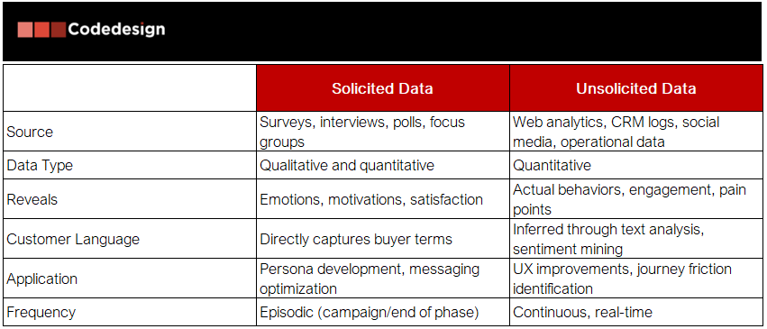 - Sollicited data uncovers why customers behave a certain way—motivations, fears, desires—helping to tailor emotional connection strategies and messaging.