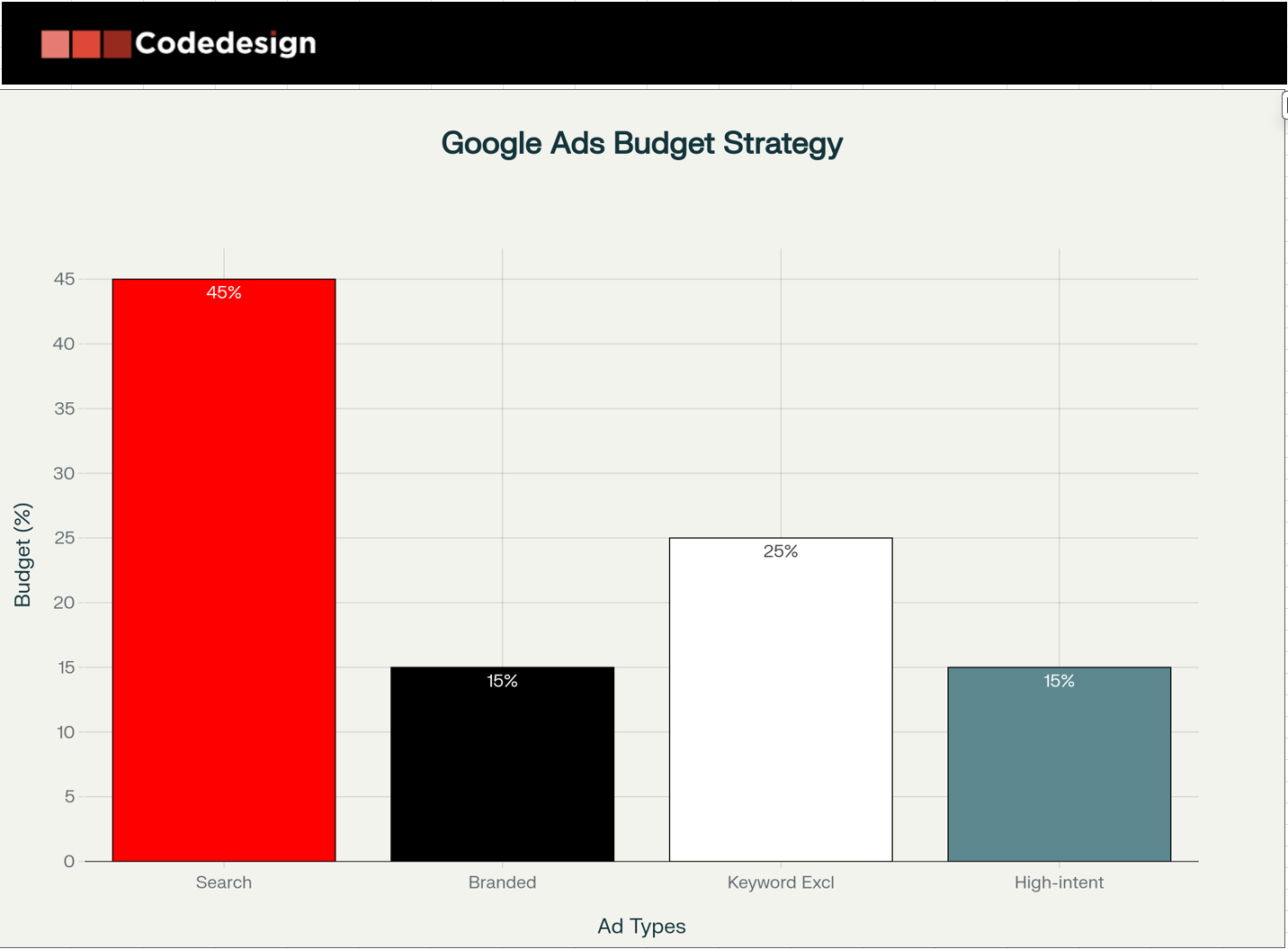 Codedesign leverages over $8 million in client digital advertising experience to recommend highly targeted keyword groups focusing on tightly themed clusters reflecting specific buyer journey stages. The strategy prioritizes high-intent commercial and transactional keywords alongside branded terms.