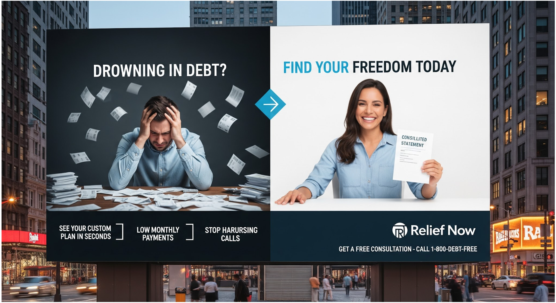 Trust-Building Through Transparency: Skepticism about debt relief scams is high. Messaging that explicitly discloses “no upfront fees,” “licensed and certified,” and “results may vary” satisfies the need for honesty and reduces perceived risk, nurturing trust without undermining compliance requirements.