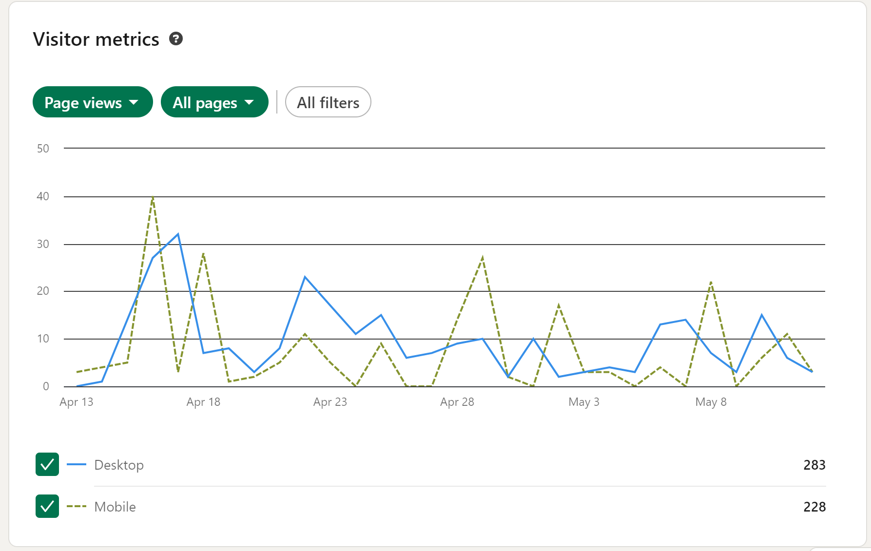 - Visitor Analytics: This section tracks the number of page views and unique visitors. You can also see demographic data about your visitors such as job function, location, and company size.