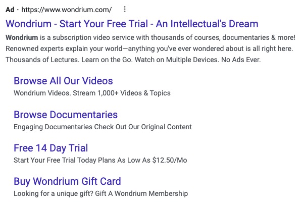 By saying straight away that "Wondrium is a subscription video service," it only takes your reader a few seconds to figure out they should click.
