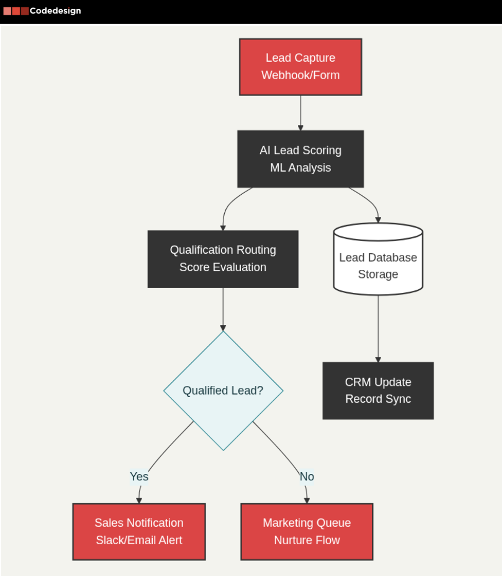 ├─ Warm Leads → Nurture sequence + CRM entry + follow-up scheduling