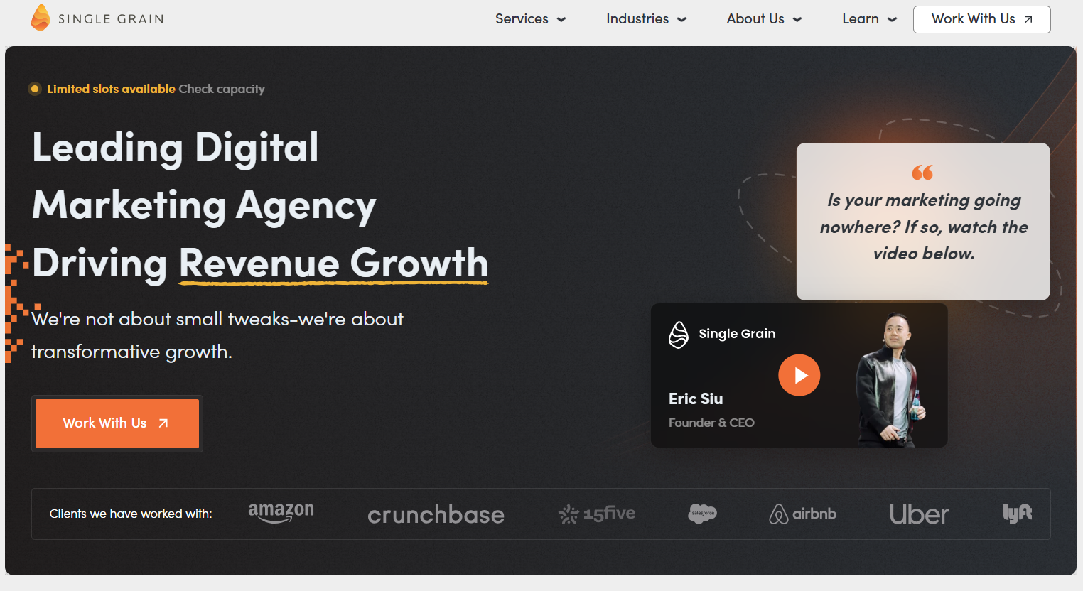 Single Grain has earned recognition as a leading AI-powered marketing agency, delivering exceptional results through advanced artificial intelligence integration.
